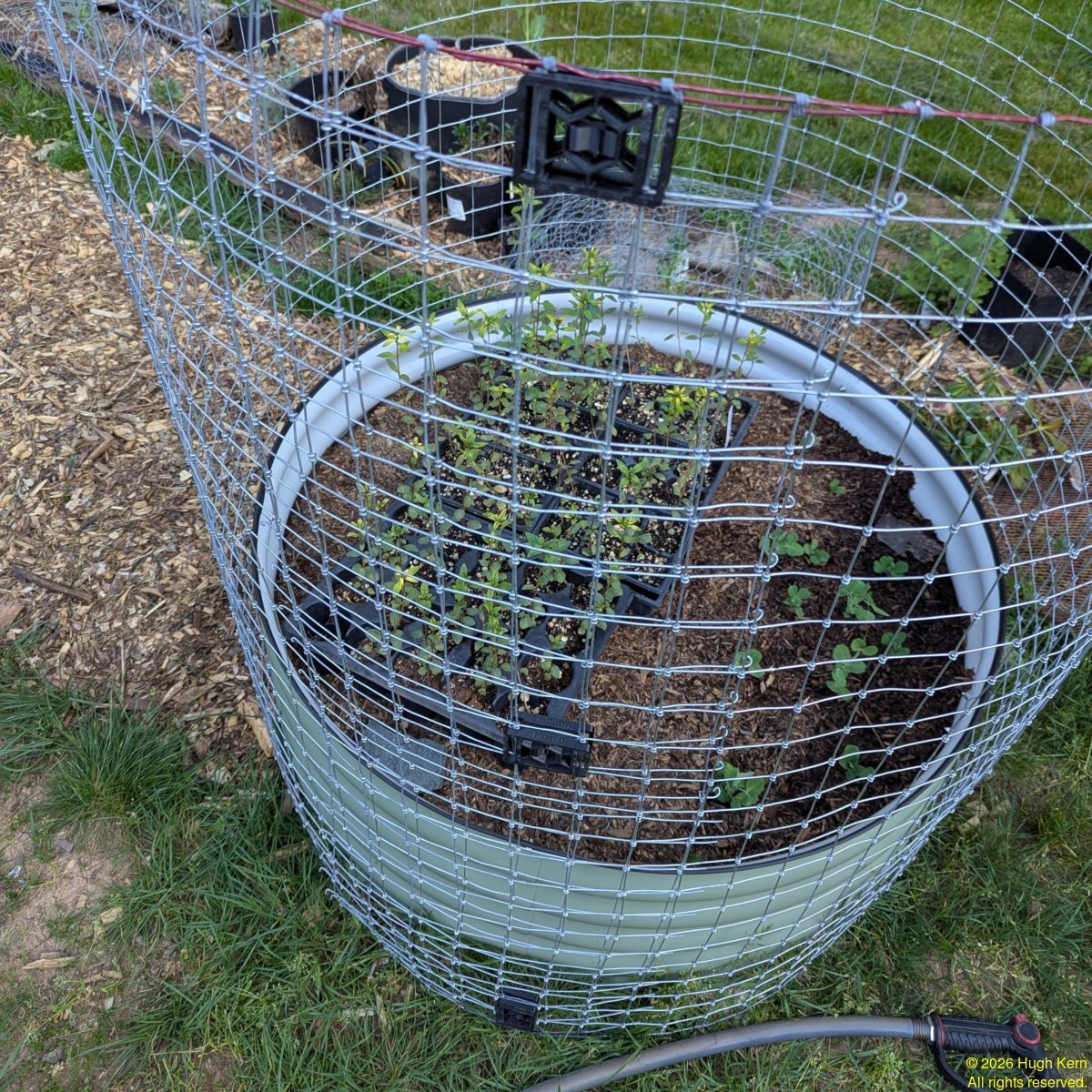 The plant fence can be to protect the plant from animals or to support it as it grows.