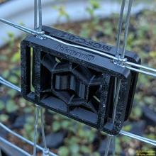 Print two plates and one clip for each fence clip. For my fencing, three of these clips hold one plant fence together very securely.
