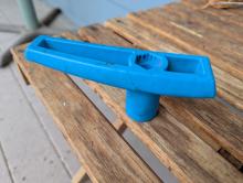This is a replacement handle without the outward curve. It can be printed as strong as you like. PETG-CF is a very nice option for strong outdoors-compatible filament.