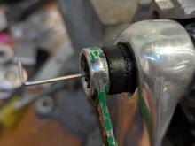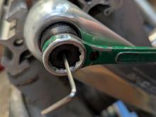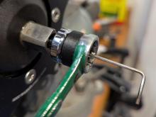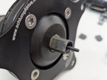 As noted in the Schlumpf manuals, shifter-buttons should be installed so there is still some (~3-5mm) inward “bounce” remaining after the inward shift. If using a setscrew, it does not need to be tightened to 1.1Nm per the manual and this may cause the button shaft to split off. If this happens, then the broken-off shaft can be held with the holdingTool-5shank. If the spindle needs to be held tightly while screwing or unscrewing a button from the other end, then hold it with a pliers-wrench using the holdingTool-3spindle tool to keep from damaging the spindle threads. The buttonTool can be used and held by a 13mm wrench to tighten or loosen a setscrew or to turn a tight shift-button.